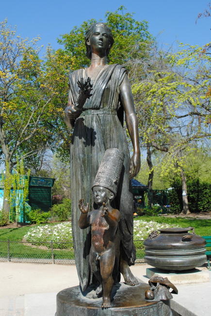 Na terase před pavilonem Choisel, ve kterém se konají krátkodobé výstavy, je umístěná socha, která nám může být povědomá. Je to originál alegorie Vítězství, která stojí na vysokém sloupu nad Palmovou fontánou na place du Châtelet a která byla v roce 1898 nahrazena kopií. Tento originál, s původním názvem Nesmrtelnost, který vytvořil sochař Boizot, se sem do muzea dostal v roce 1950. Jen pro srovnání pohled na sloup, stojící na Palmové fontáně: