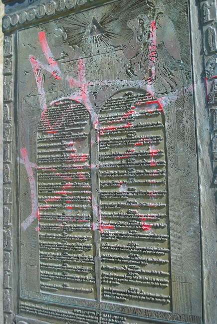 Pomník byl vytvořený v roce 1989 k 200. výročí Velké francouzské revoluce a odhalil ho tehdejší prezident François Mitterrand. Pomník je inspirován egyptskými chrámy a je na něm upevněná bronzová deska s textem Deklarace práv lidských a občanských, která byla přijatá 26.8.1789. Stejně jako oba obelisky, které jsou jeho součástí, je celý pokrytý zednářskými znaky a symboly – rovnostrannými trojúhelníky, zednářským okem, pyramidami a různými texty.
